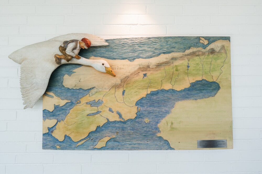 空港内のところどころに、スウェーデンを代用する童話などのアートもあるので見落とさずないで! 写真は、日本でも1980年にアニメ化された「ニルスのふしぎな旅」。昭和45年女世代なら知ってるよね!