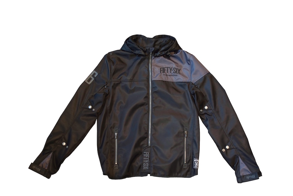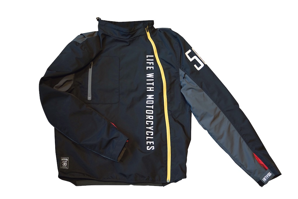 ノスタルジックな車体はオーソドックスなコーチ ジャケットとの相性もいい。インナープロテクションジャケットがセットになっていて、安全性も考慮されている。4万6970円。サイズ:S・M・L・XL