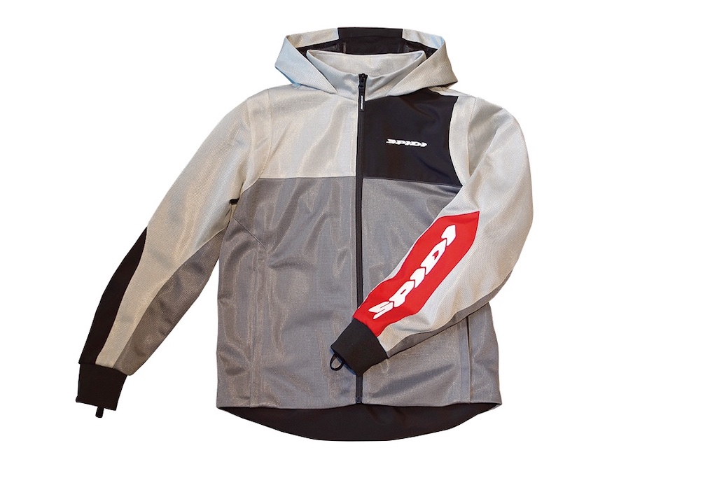 SPIDI社から依頼があり横澤さんが手がけたアシンメトリーが特徴的なデザインのメッシュパ ーカージャケットで、SPIDIロゴに注力させるた めの差し色は実は歩行者からの視線も意識さ れているのだそう。2万9920円。サイズ:S・M・L・XL・XXL・3XL
