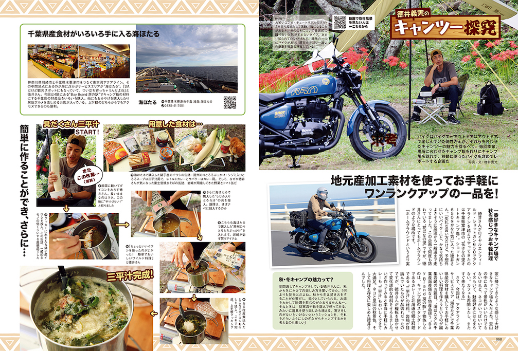 チュートリアルの徳井義実さんが、究極のバイクキャンパーを目指す連載企画。担当編集・岩崎がリクエストするキャンプ飯を作ったり、気になるキャンプ場を紹介する。