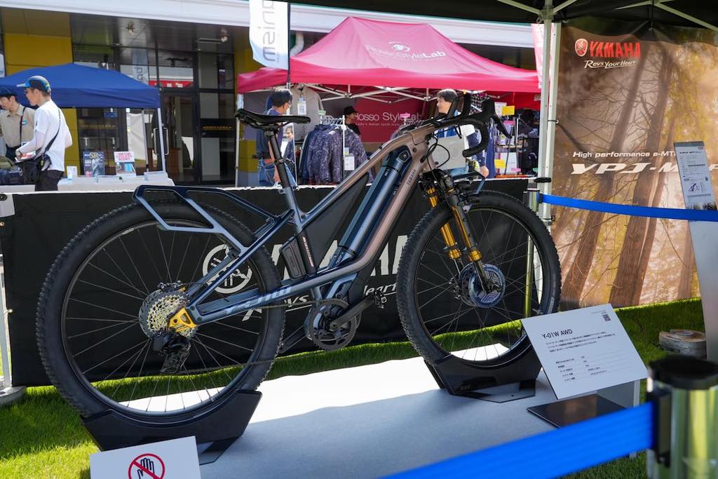 車両展示は、WABASH RT、CROSSCORE RC、CROSSCORE Connected、YPJ-XC Final Edition、YPJ-MT Proの5台に加えて、昨秋のジャパンモビリティショーで披露されたコンセプトモデルY-00Z MTBとY-01W AWDの2台も展示されていた。Y-00ZMTBはMCから由来する技術を用い、オフロードMTBライディングにおいて効果を発揮する機能をふんだんに搭載しeMTBで表現。