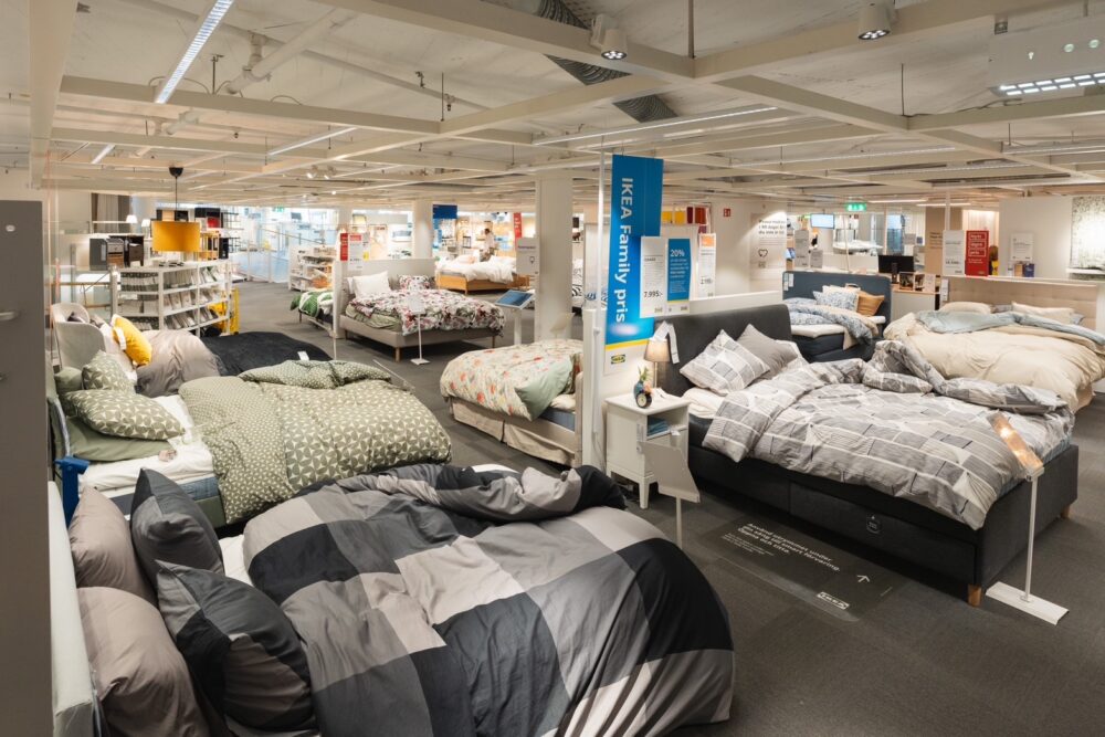 1965年にできたIKEAの本店はストックホルム郊外にあります。Kungens kurva(クンゲンス・クルヴァ)という場所で、面積は63200平方メートル。ここには、Skärholmen (シャールホルメン)駅からバスで行くか、ストックホルム中心から出るIKEAのバスに乗ると便利。建物は丸くてとても見やすい構造で、システムは日本と同じく、最後はメモったものを棚から自分でカートに入れてレジへと進む。