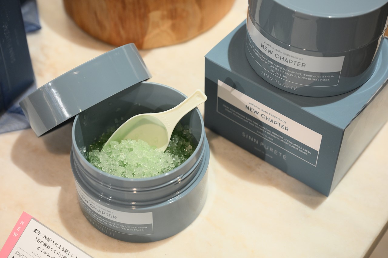 本日より発売の第2弾コラボレーションアイテム「マインドフル バス エクスペリエンス NEW CHAPTER」は、発汗と保湿効果を併せ持ち、心を落ち着けて「明日も頑張ろう」と思える香りをこの製品のためだけに開発。発売を迎えられたことを「早く皆さんにお披露目したくてワクワクしていたので、とてもうれしいです」と喜び、化粧品の開発に携わった心境を「今までしてこなかったので、夢が叶った気持ちです」と吐露しました。