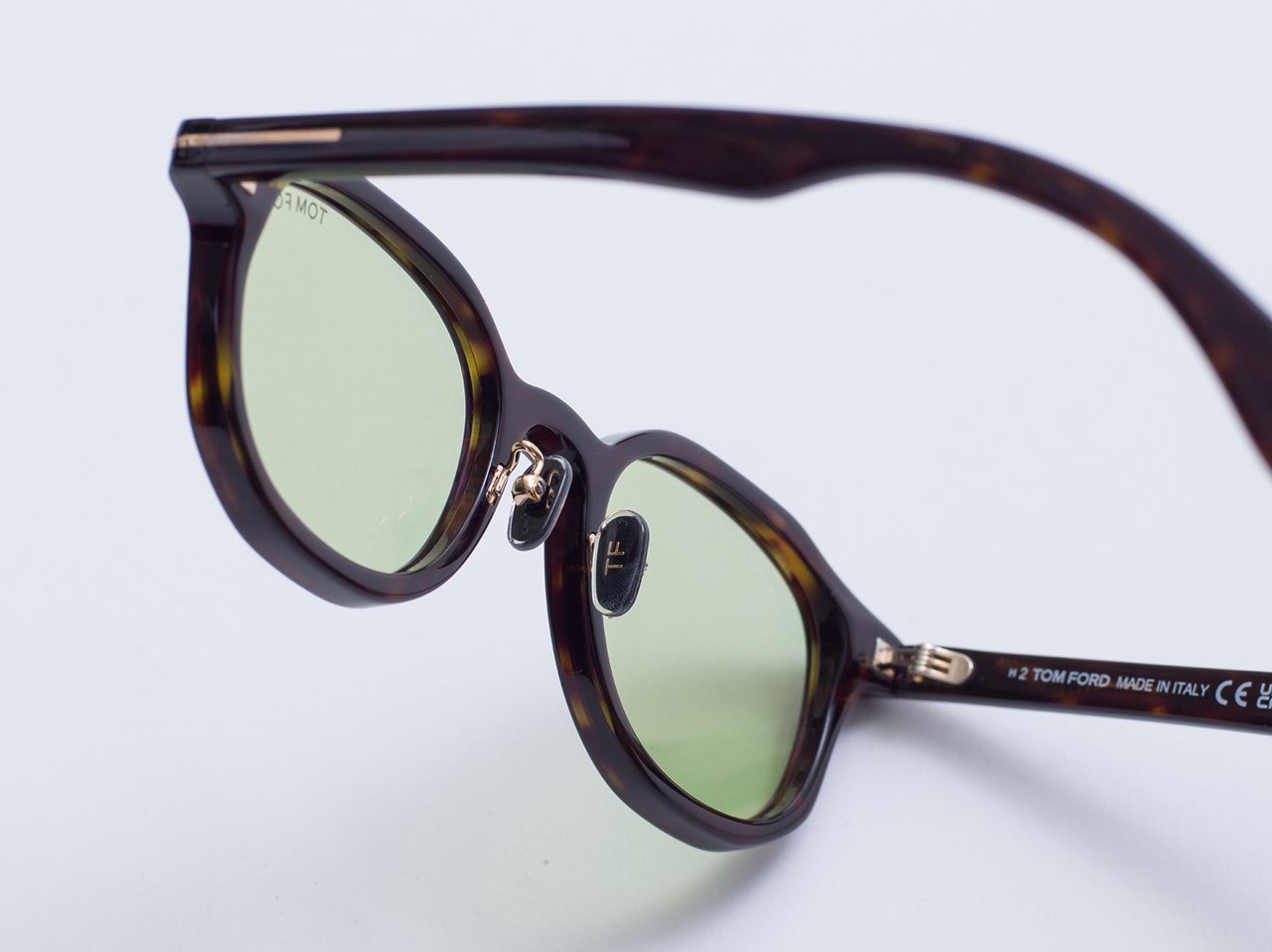 本作は、1849年に創業したイタリアの老舗メガネ生地メーカーであるマツケリ社製アセテートを使用した質感の高い素材に、ミドルウェイトに仕上げられた細身のデザインがデイリーに使いやすいジャパンモデルの『FT1149-D』を採用。フレームをクラシカルで上品な雰囲気を持つブラウンのべっ甲で、レンズには日常使いのしやすさを考慮し、自然な風景の色味を損なわず、長時間装着しても目が疲れにくいカラーレンズを採用している。