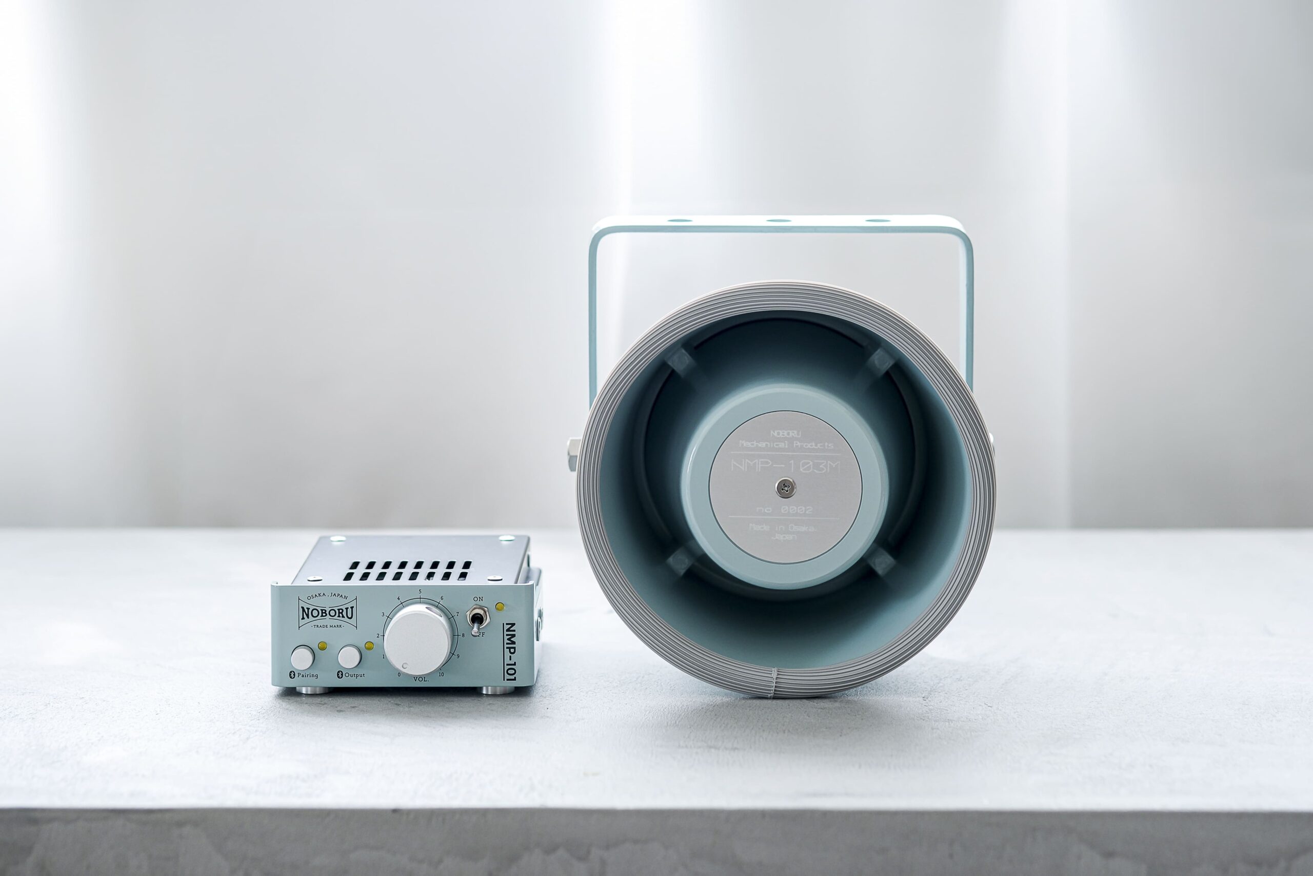 「重厚だけどかわいい」「ノスタルジックな音質」「落ち着いた音色」と様々な声受を受け、さらに、歴史と世界観を味わっていただくために、業務用そのままの「船舶ブルー」を使用した商品を開発した。