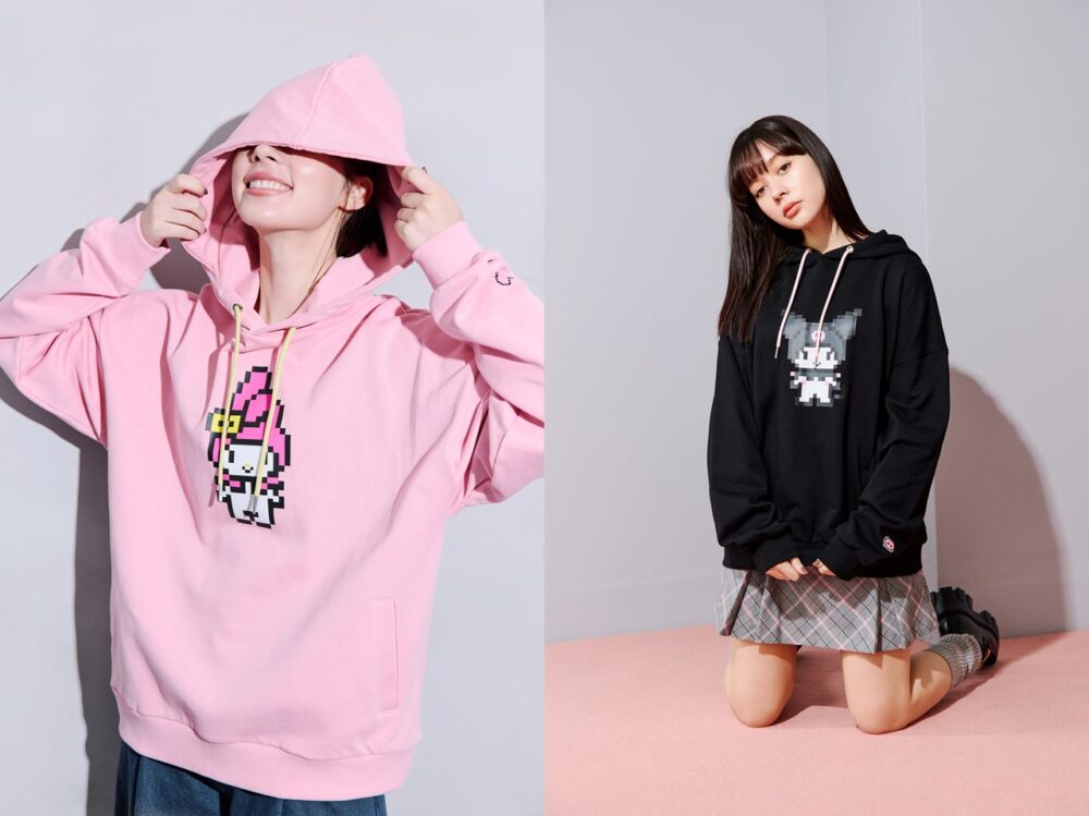 ハローキティ、マイメロディ、クロミを今期注目のピクセル柄に落とし込んだ遊び心満載!袖口のプリントも可愛いワンポイント。肌当たりの良いコットンで、しなやかでありながらハリがあり、着用シルエットもかわいいフーディー。