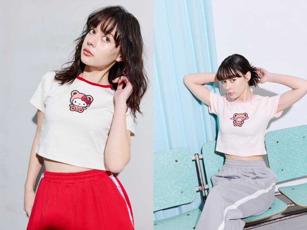 フロントにはハローキティ、マイメロディ、クロミがくまの着ぐるみを着たキャッチーなプリント。程よく厚みがあり、どんなボトムとも合わせやすい短すぎないショート丈なので幅広いコーデをお楽しみいただける。