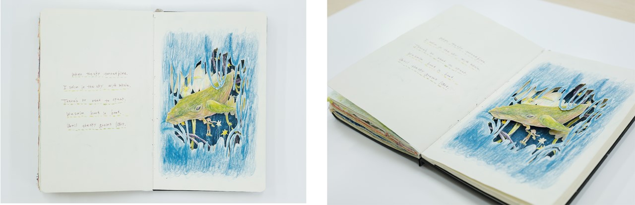 今回は「Newfound Creativity」のテーマを基に、様々な学部から多数の学生がモレスキンノートブックをキャンバスとして、自由な発想と独特なスタイルを活かした作品が多く集まった。本テーマはクリエイティビティやインスピレーションを探求することを目的とし、新たな気づきやアートスタイルに触れ合う貴重な機会となった。