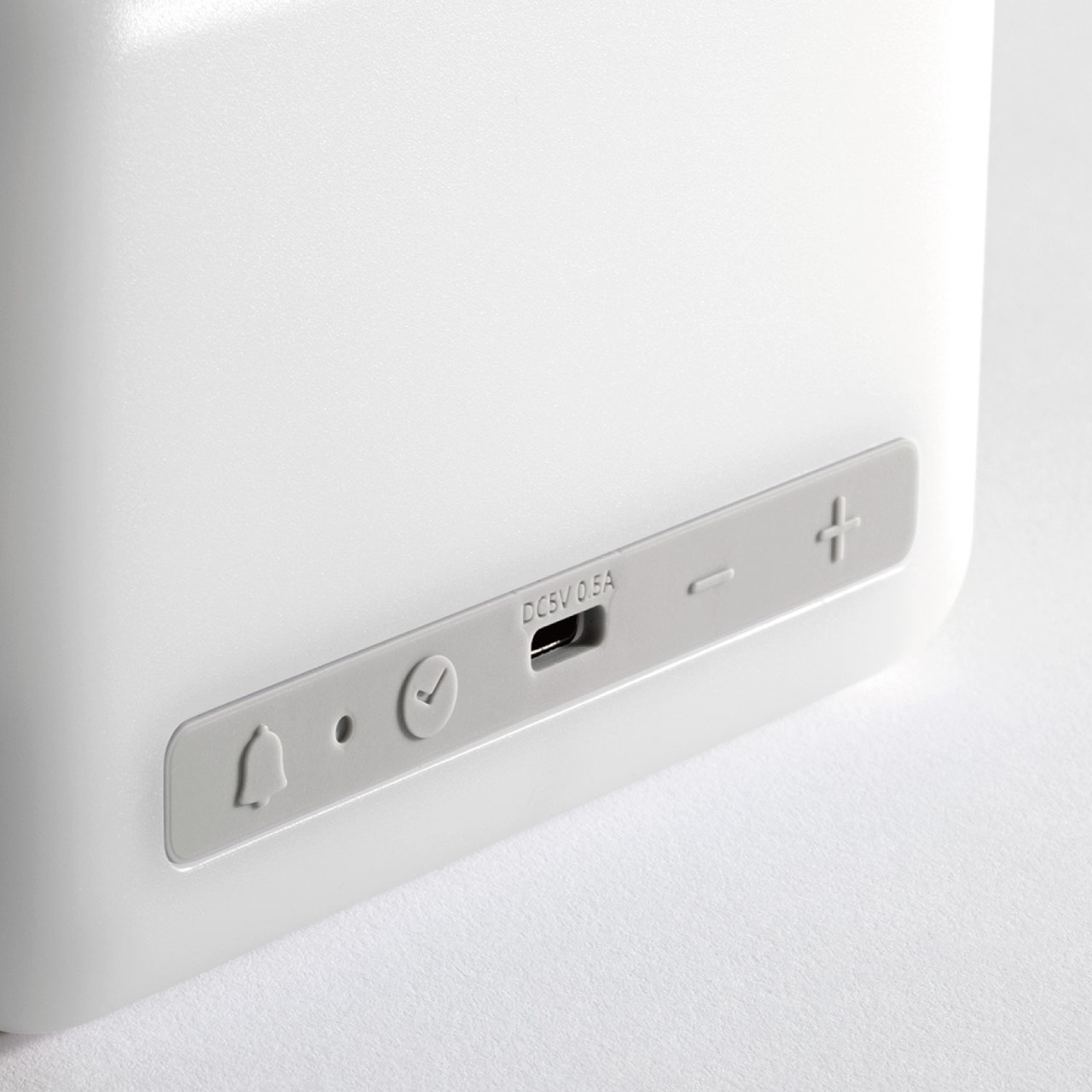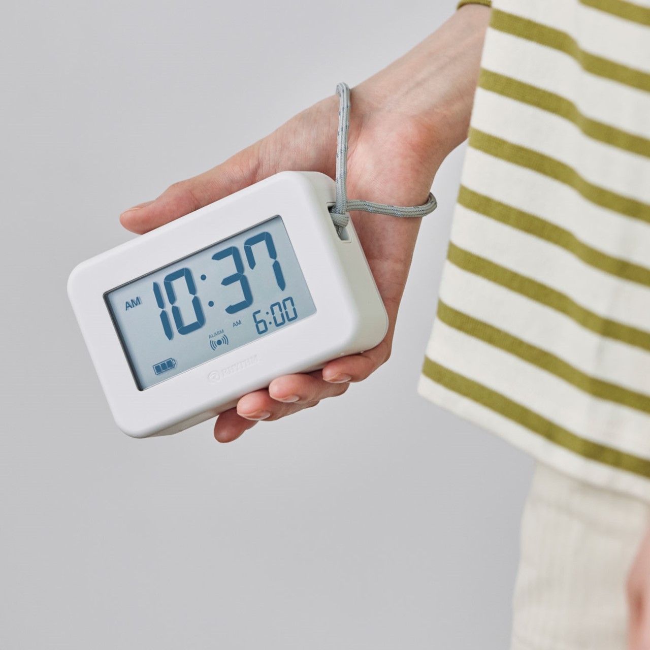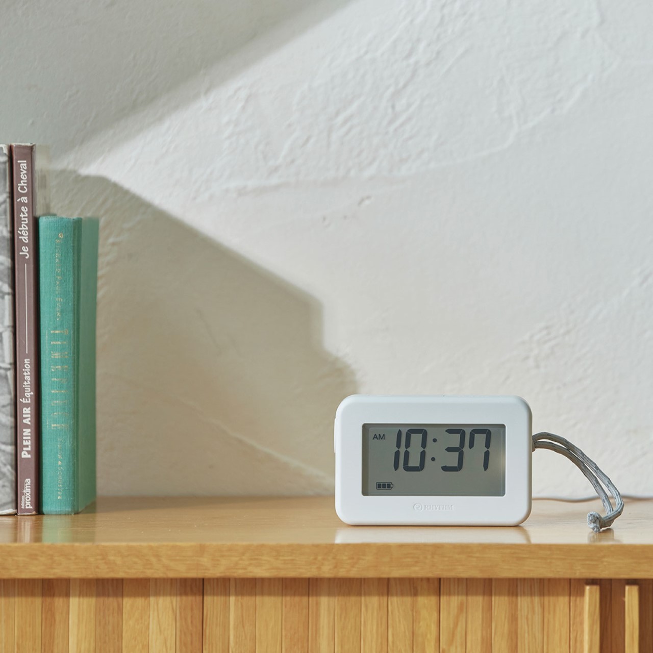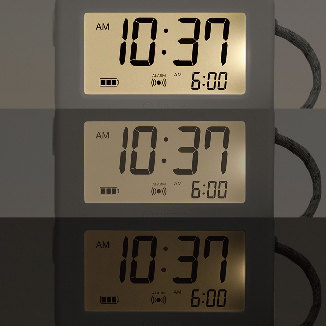 液晶画面は3段階の明るさが調節でき、昼夜を問わず時刻が見やすく、寝室などで活躍する。目覚まし機能付きで、アラーム音とともにランタンが強点灯で灯り、起きる時間を知らせてくれる。