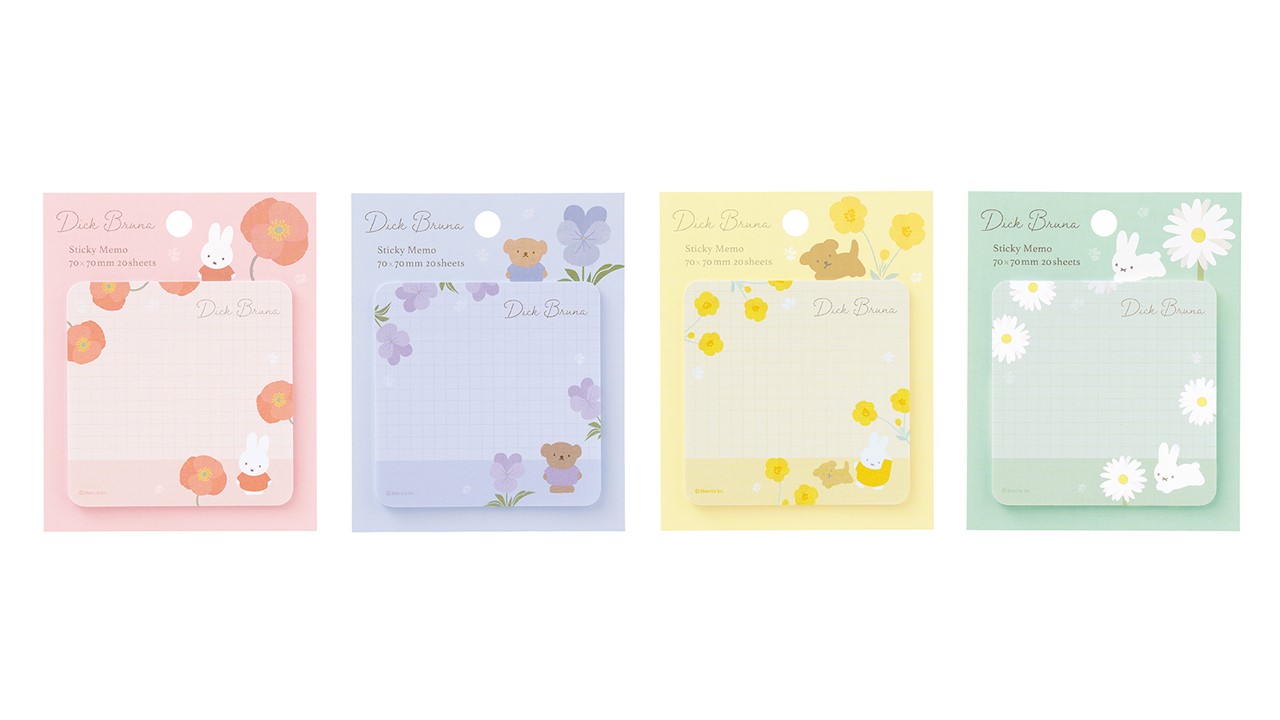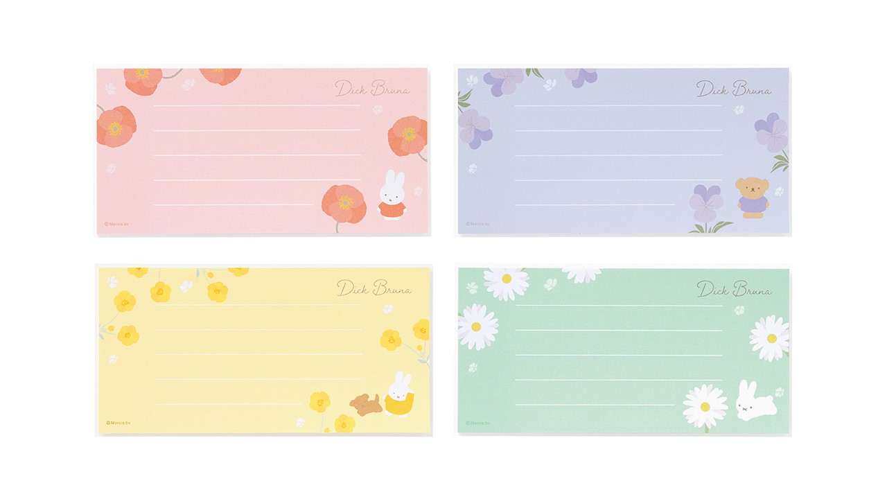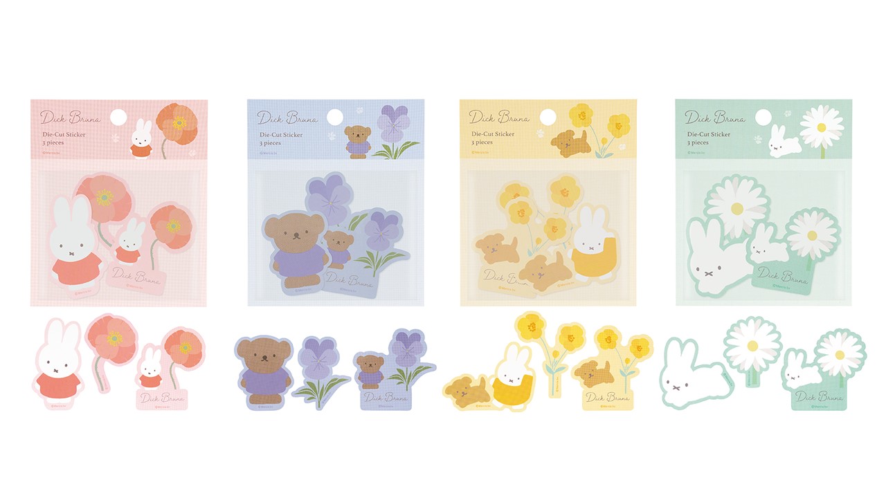 『ディック・ブルーナ ステーショナリー フラワー』は、ディック・ブルーナの絵本に登場するキャラクターたちとお花をあしらったデザインのステーショナリーシリーズ。キャラクターは「ミッフィー」「ボリス」「スナッフィー」「うさぎ」で、お花はディック・ブルーナの絵本「bloemen-boek」で描かれているデザインを採用した。パステルカラーをベースにしたやさしいタッチのイラストで、華やかでありながらも大人の雰囲気が漂う仕上がりとなっている。