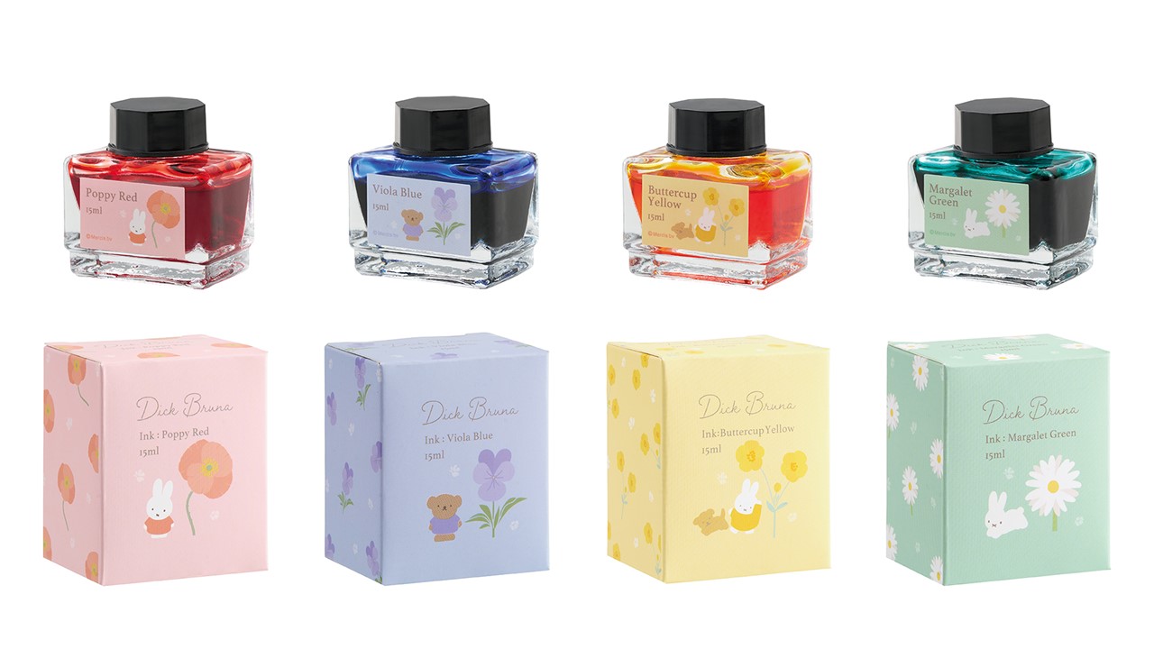 万年筆やガラスペンで使用できるインク。カラーは全4色で、ディック・ブルーナの絵本に描かれるお花をイメージしている。