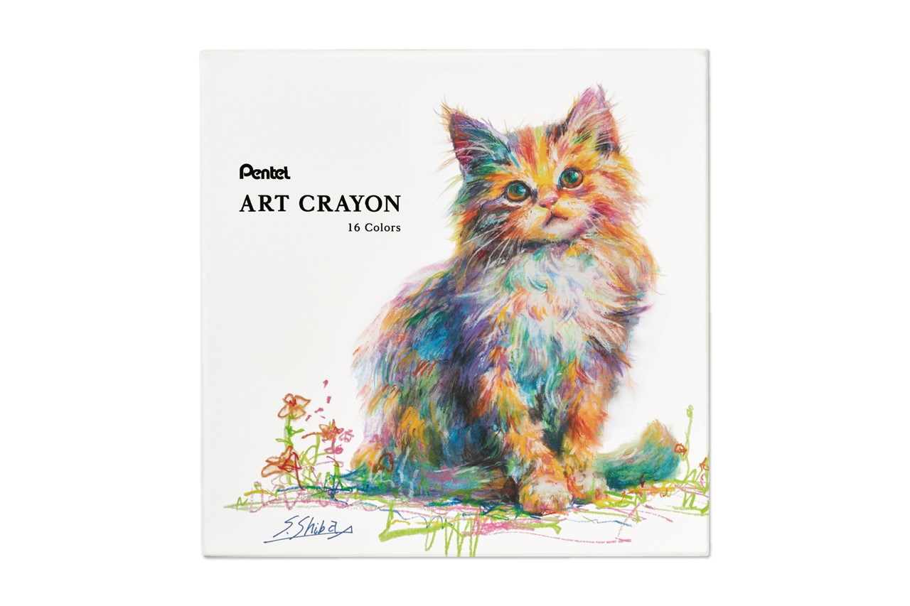 パッケージのアートワークは柴崎氏が16色を使用して描き下ろし。猫の毛の柔らかなタッチ感は16色ならではの表現。絵画作品のように飾り、日常にアートを取り入れることができる。