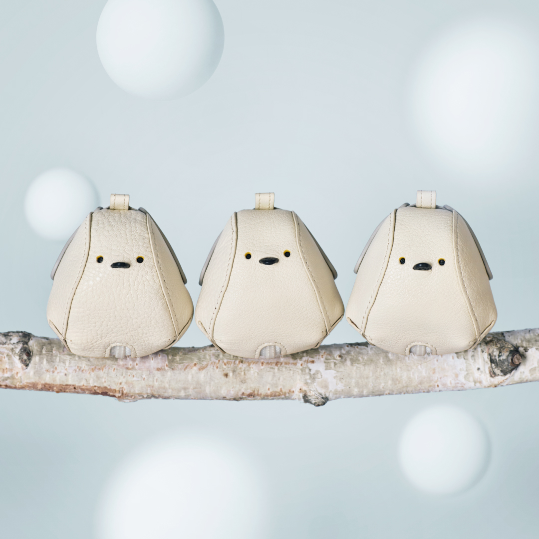 冬の北海道で暮らす小さな鳥、シマエナガ。「雪の妖精」とも呼ばれる、まん丸なフォルムをポーチに再現。