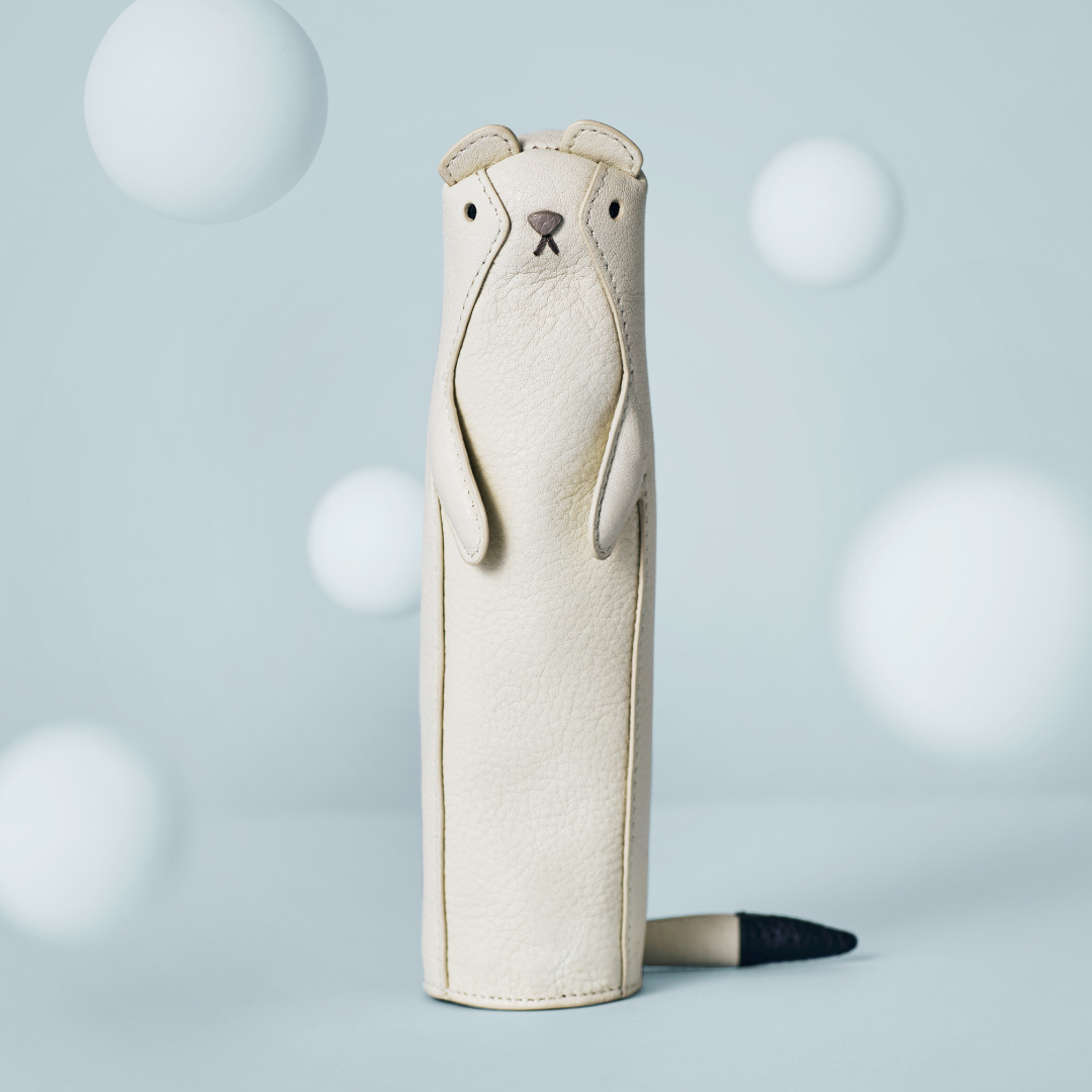 つぶらな瞳で立つ姿をそのままペンケースに。難しい構造ながら、職人が丁寧に作り上げた一品。