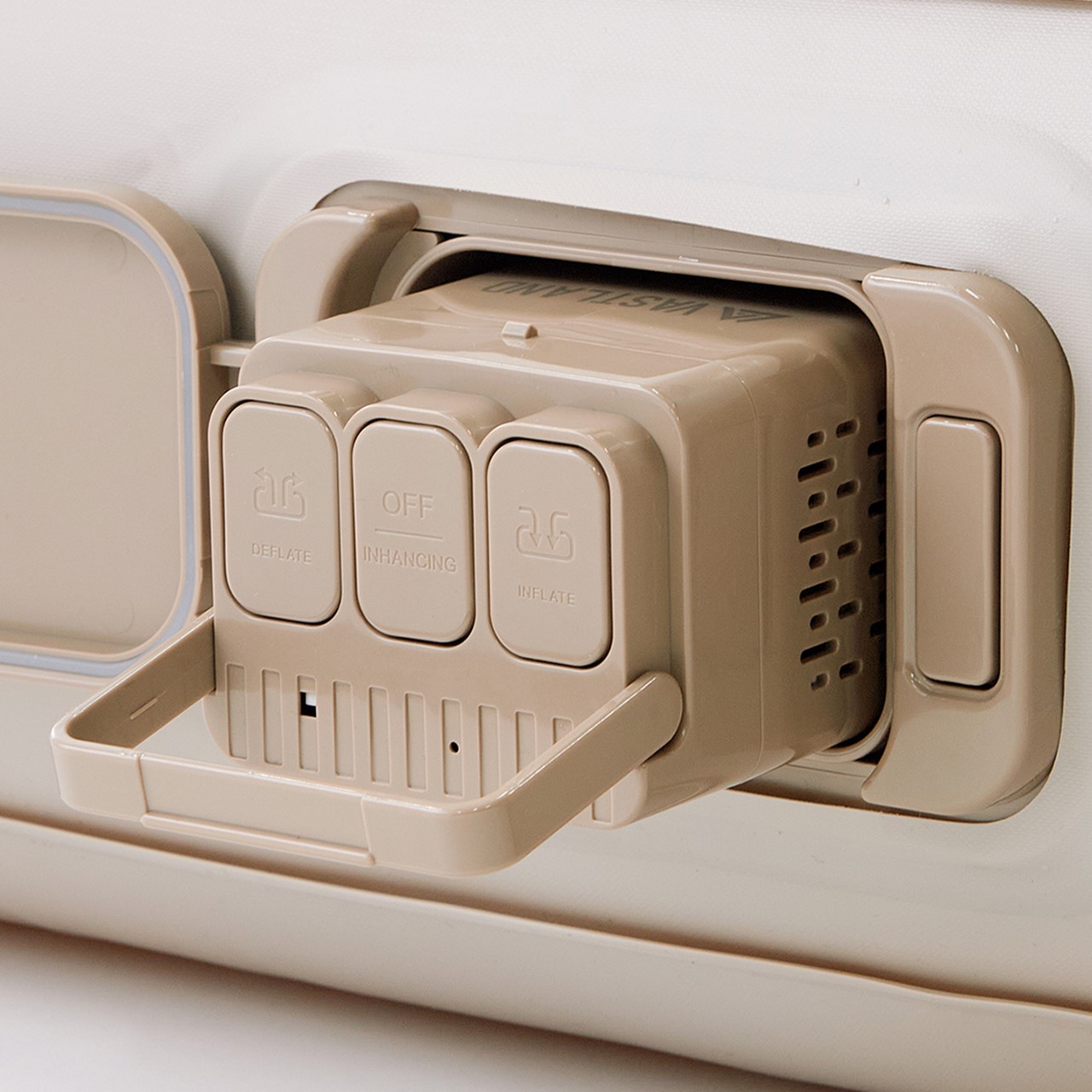 ボタンを押すだけで膨らむため、設営の手間がかからない。片付ける際もボタン1つで排気を行える。