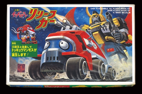 『イッパツマン』は、パッケージに「フジテレビ系全国放映中」の番宣デザインが入っているのが特徴。一昔前では当然のようにゼンマイ走行になった商品を多く感じるが、時代はリアル路線に入っているので動力はない。『イタダキマン』はシリーズ終了タイトルであるが、マーク社としても最後のプラモデルだったようだ。
