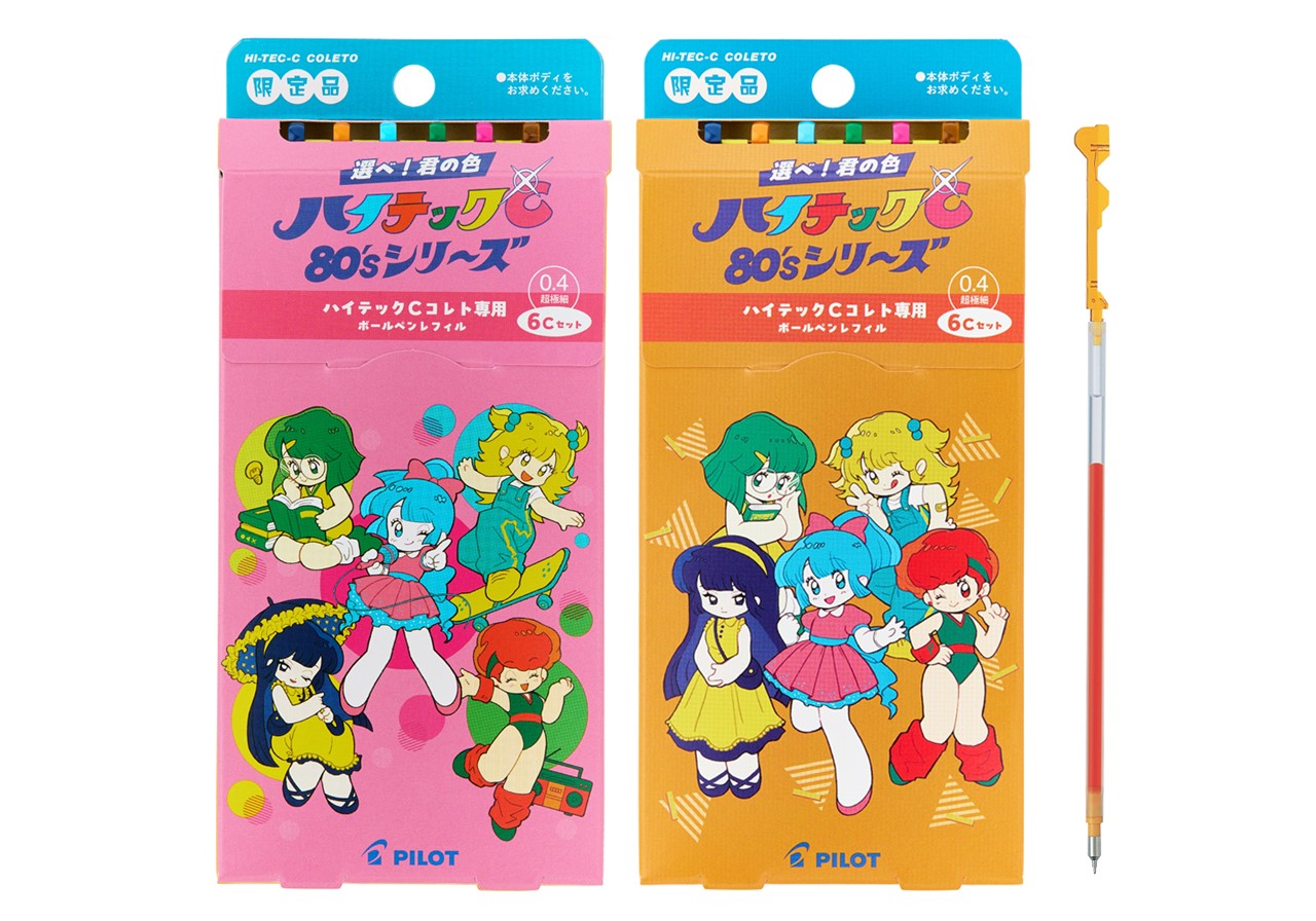 『ハイテックC コレト専用レフィル 6色セット レトロ』(価格:660円(税込))も数量限定で同時発売。パッケージには、80年代の漫画やテレビアニメを彷彿とさせる個性的なイメージキャラクターが描かれ、レトロな雰囲気を演出。インキ色はブルーブラック、オレンジ、クリアブルー、グリーン、ピンク、アプリコットオレンジの6色をラインアップ。