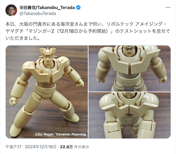 『海洋堂さんまで伺い、リボルテックアメイジング・ヤマグチ「マジンガーZ(12月18日から予約開始)」のテストショットを見せていただきました。』