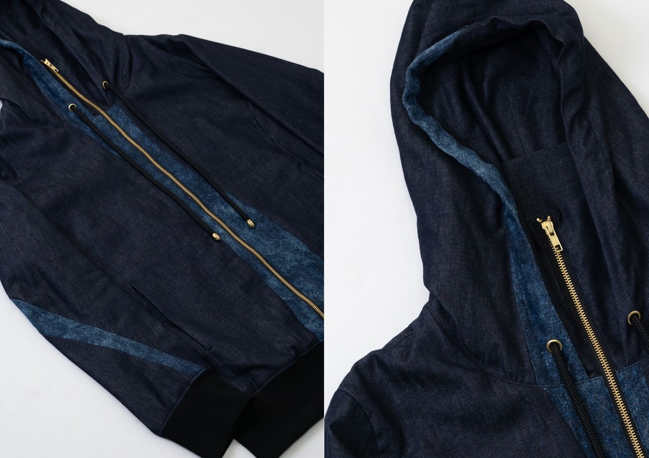 天の川や月のデザインは立花慎之介が考案。カジュアルなデニムパーカーながら、上品さを兼ね備えた一着に仕上がった。