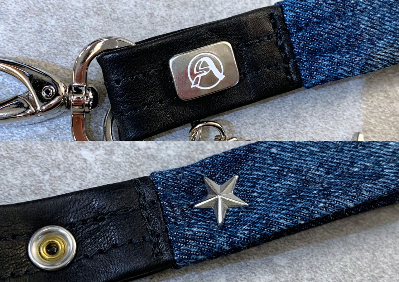 青木被服の人気アイテム「美星デニムキーホルダー」も同時販売。表には青木被服ロゴリベット、裏には星リベットを施した特別バージョンをリリース。キーホルダーとしてはもちろん、バッグのワンポイントとしても活用できる。付属の星形メタルスターチャームが印象的なアイテムとなっている。