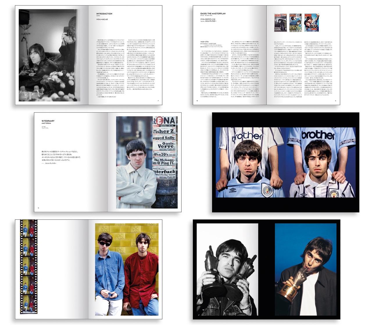 マンチェスターのアフレックス・パレスで新調した服に身を包む初々しい姿、地元のパブやストリートで撮影された等身大の彼ら、Brother社のロゴが入ったマンチェスター・シティのユニフォームを着たギャラガー兄弟──。バンドの進化と世界的成功への足跡を、ビジュアルで追うことができる。
