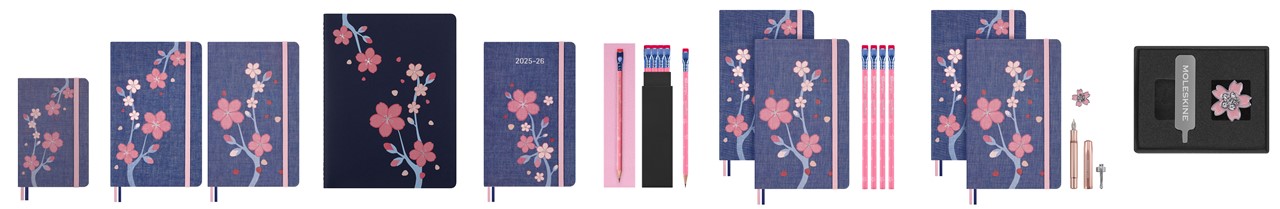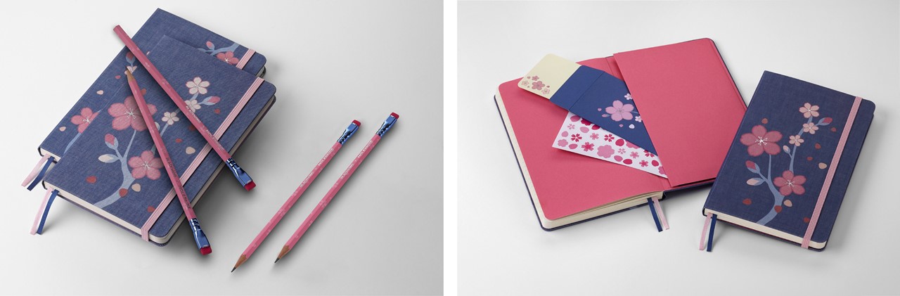 本コレクションでは、ノートブック3種、18ヶ月ダイアリー(7月始まり)、カイエジャーナル、ブラックウィング12本鉛筆セット、ピンズ、そしてボックスセット2種をラインアップ。日本の文化、文学、芸術において象徴的な存在である「さくら」にインスパイアされたデザインが施され、一瞬の美しさと儚さを表現している。