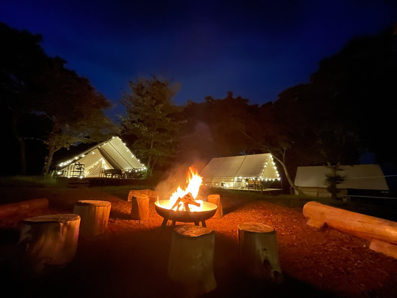 - 日没後にはキャンプファイヤーを囲んで焼きマシュマロ体験ができる