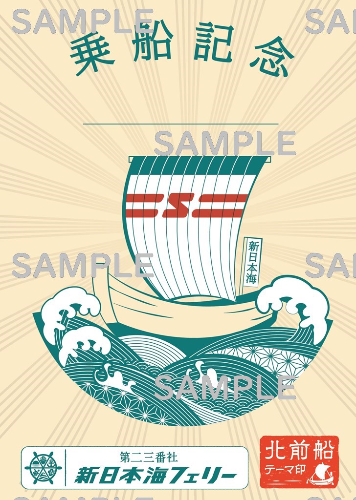 「北前船御船印」は従来の御船印の基本仕様を満たしつつ、北前船の寄港地周辺の船社が発行する、新しいテーマの御船印。これらの印には、事務局公認の「北前船マーク」が配置される。