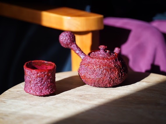 SENKAは、従来の陶磁器にはない独自の個性を持ち、茶道の世界に新たな一石を投じる。日本には「壊れたものを直して使う」という修繕の美学があるが、TAIZAN SENKAも金継ぎや呼び継ぎを施すことで、陶器のように修繕が可能である。