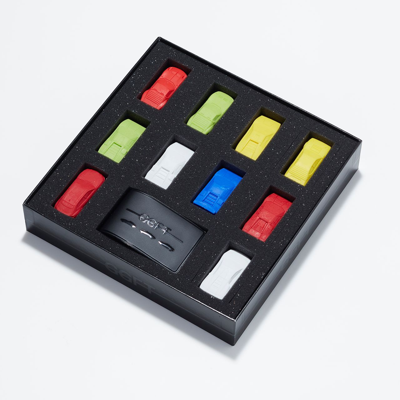 1970年代後半に巻き起こったスーパーカーブームで人気を博した「スーパーカー消しゴム」を現代に復刻。これまでに、第1弾「ランボルギーニ」、第2弾「デ・トマソ、GFG Style、ダラーラ」、第3弾「マセラティ」、第4弾「はたらくクルマ」、第5弾「ランボルギーニVol.2」を発売している。