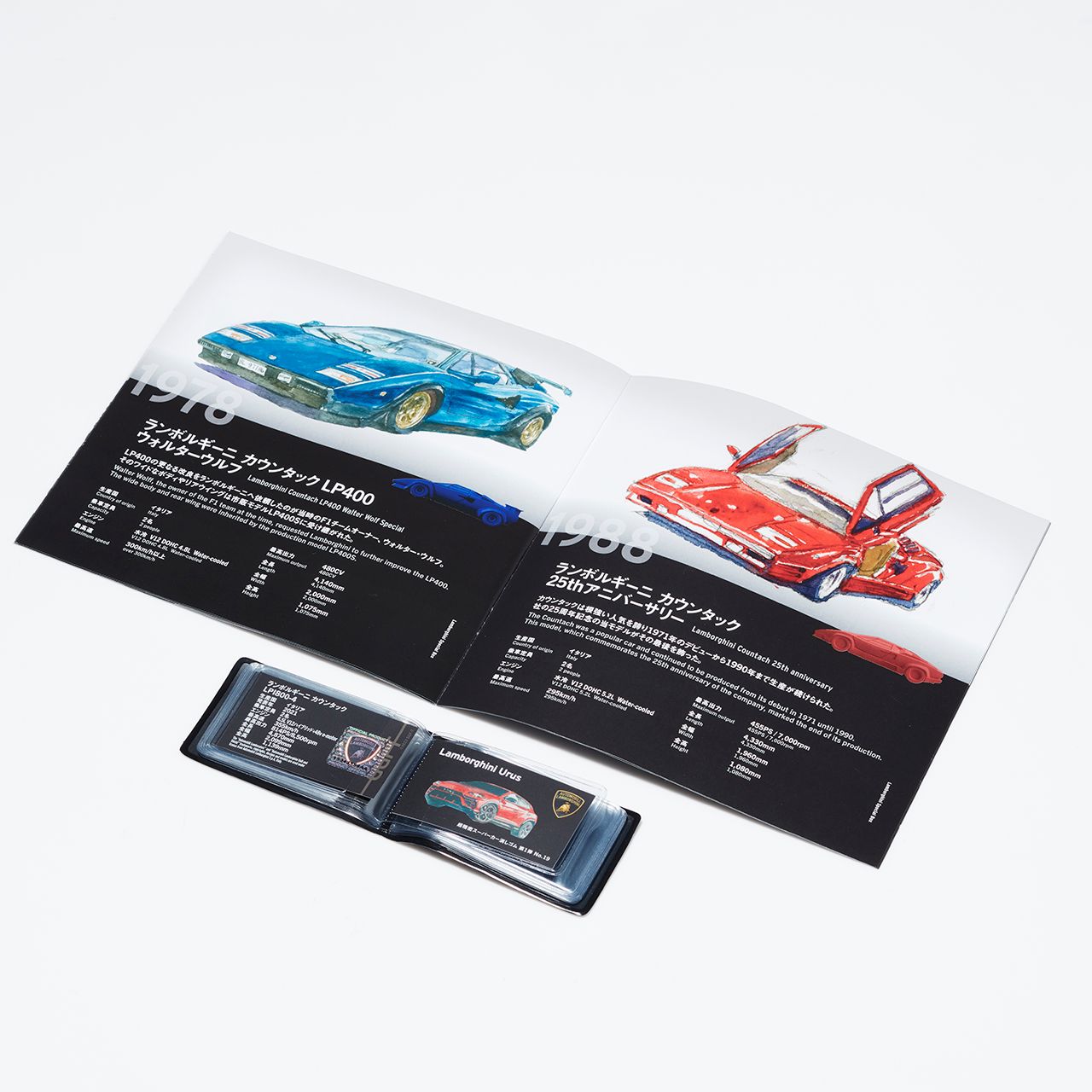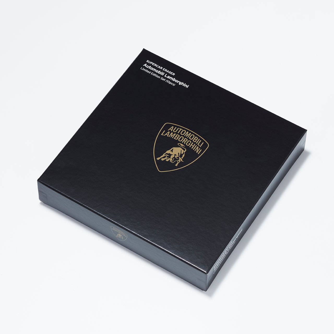 セットには、ランボルギーニ イオタ、ランボルギーニ ミウラP400SV、ランボルギーニ カウンタック LP500、ランボルギーニ ウラッコP250S、ランボルギーニ カウンタック LP400、ランボルギーニ カウンタックLP400S、ランボルギーニ カウンタック LP400S ウォルターウルフ、ランボルギーニ カウンタック25thアニバーサリー、ランボルギーニ ウルス、ランボルギーニ カウンタック LPI800-4の超精密スーパーカー消しゴムが各1個ずつ収納されている。また、10車種の解説ブックレット、ホルダー入りスペックカード(10枚)も同梱される。