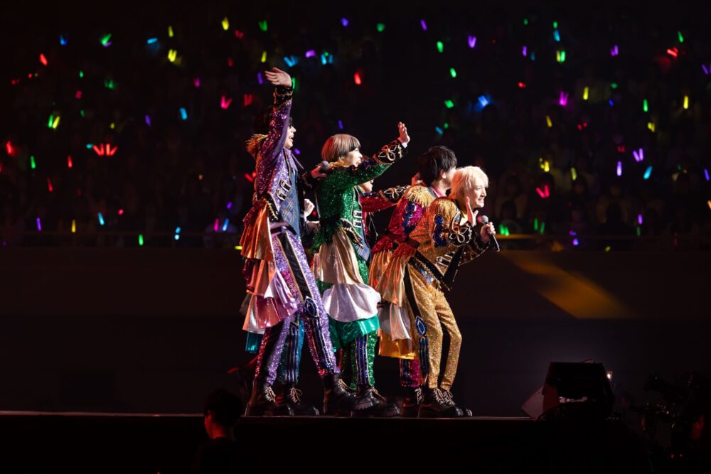 怒涛の展開に一息ついたメンバーは、マイクを取って満員の客席へとメッセージを贈った。ここまで勢いよくステージを駆け回っていたメンバーは、いよいよライヴが終わりに近づいているこのタイミングで感極まり……なるきは涙を浮かべて言葉に詰まる。ぱっちは「みんなの推し、日本武道館に立ったぞー!」と万感の思いを込めて叫ぶ。ようたは「教師を辞めてアイドルになる!」と宣言して芸能界に飛び込んだ7年前の想いを振り返り、家族やファンへの感謝を口にした。