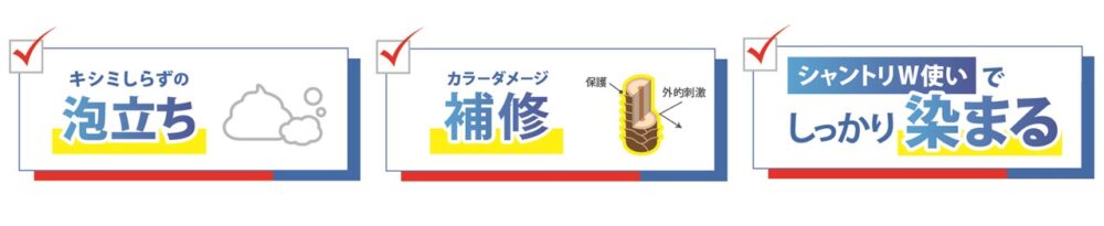 ブリーチ毛やハイダメージ毛にやさしい贅沢な洗浄成分を配合。泡立ちがよく、色ムラになりにくいため、美しく染め上げることができる。