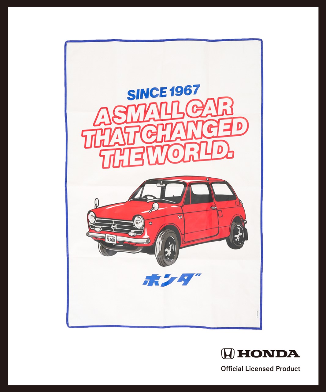 デザインのモチーフは「1960年代」。懐かしくもあり、新鮮なカタカナの「ホンダ」ロゴを用いたキャップやキーホルダー、名車と言われたスポーツカーS800や当時の軽自動車の常識を覆す広さとパワーでベストセラーカーとなったN360のイラストを用いたTシャツやエコバッグなど、手にした途端、出かけたくなるアイテムが数々登場する。今しか手に入らない限定アイテムとして、3COINSに登場する。