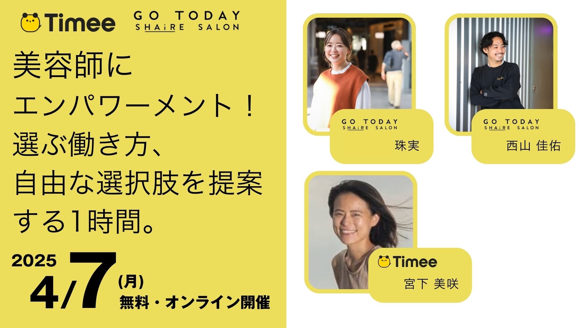 本セミナーでは、タイミーと当社がそれぞれの強みを活かし、美容師が「好きなスタイルで働ける選択肢」を増やすことを目的としている。