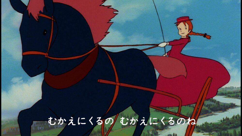 「ああ、もうオーケストラにぴったりのすばらしい絵だと感動を覚えました。アンが空想しているとおりの絵でした。馬が赤い道を駈けているところは、パッカパッカとパーカッションで蹄の音が鳴っているんですが、中盤になって、馬車がペガサスのように空に飛んでいく時に、その蹄がスーッと消えるんです。三善先生の音楽に絵を合わせたのか、それとも絵に音楽を合わせたのか…? もう神業です! 毎回オープニングを見てその絶妙なチェンジに興奮していました。音楽とアニメが一体となって『赤毛のアン』ができ上がっているんだという気がしますね」
