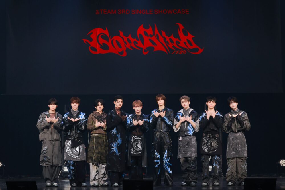 「オオカミ系男子」にちなみ、&TEAMとオオカミの共通点を聞かれると、TAKIは「昔から、オオカミは仲間意識が強くて仲間が攻撃されたら本能でわかるといいますが、&TEAMも助け合って補い合っているところが似ています」と話し、まるで専門家のように話す姿に塚地氏からつっこまれる場面も。さらに、5月から始まるアジアツアーへの意気込みについてJOは「まだお会いしていないLUNÉの皆さんをパフォーマンスで驚かせたいし、LUNÉの皆さんが歌ってくれる歌声も楽しみにしています」と伝え、会場から大きな拍手が送られた。最後の挨拶では、Kが「オオカミのように群れとなって、自分たちだけの居場所を確立しようとする姿が表現されている作品となっています。自分たちのオリジナリティを持ちながら、LUNÉの皆さんとこの9人と一緒であれば、この先も僕たちだけの居場所を確立していけると思うのでこれからも応援お願いします!」と意気込みを伝えた。最後には、3rd SINGLEのタイトル曲「Go in Blind (月狼)」のパフォーマンスを披露。真っ赤なスモークのなか登場した9人が、力強いボーカルとともに、目隠しをしても一糸乱れない完璧なパフォーマンスを見せつけた。最後には、目隠しをドロップしステージを後にした。