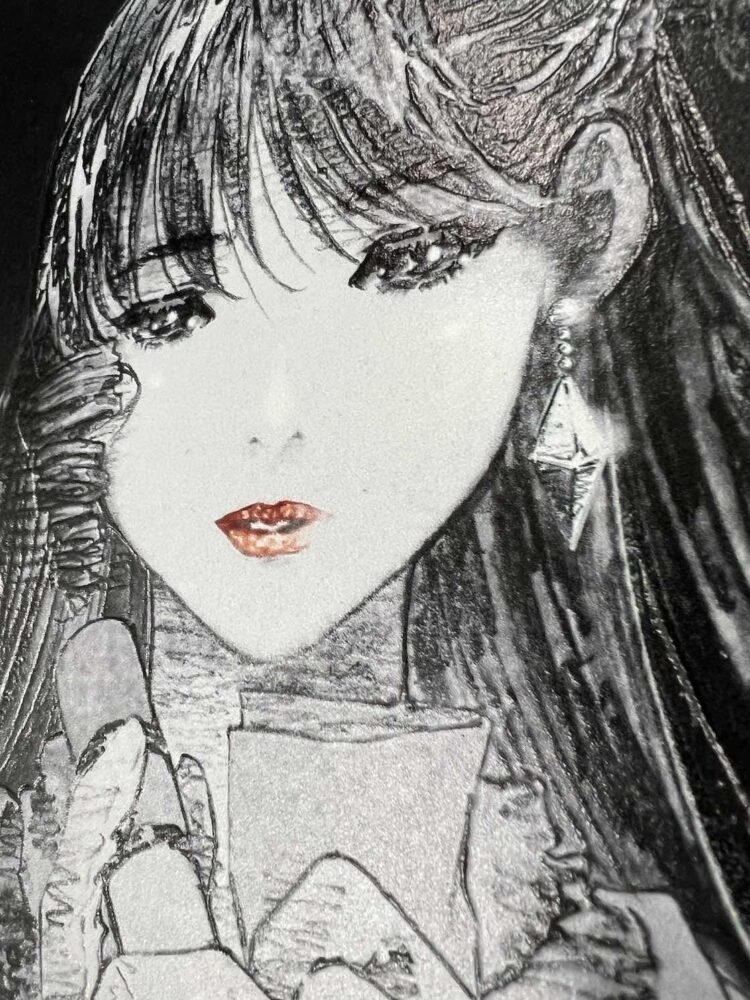 あとは編集部の方とデザイナーの方で、目をぱっちり開けてるラフと伏し目がちのラフでどちらがいいかっていう討論があったんです。この画集が通常の3000円くらいであれば、ばっちりカラーにしてかわいく歌う絵がいい。ただ、8000円となるとちょっと特別感がある方がいいって話になって。それだったら伏し目がちのモノクロの方が違いが出るということで、今回のカバーに決まりました。これも実際はボツったりして、いろいろ描き直したんで、結構バージョンはあるんですよね。