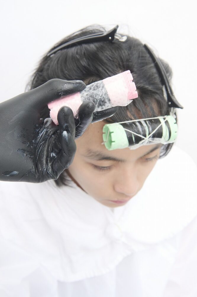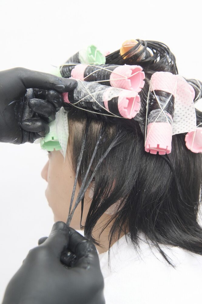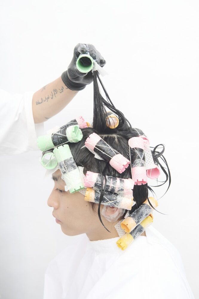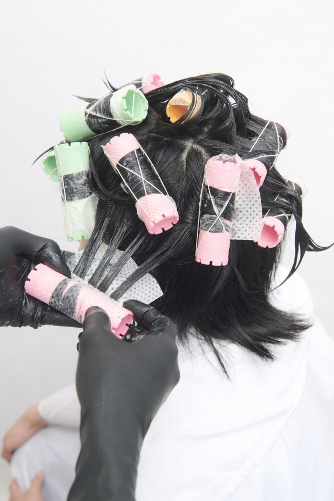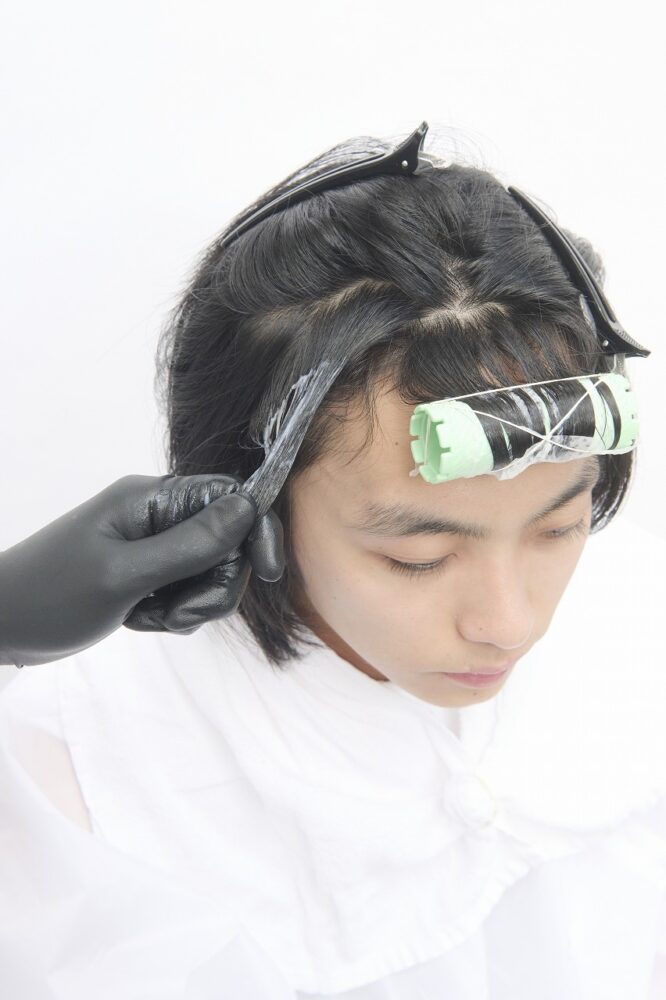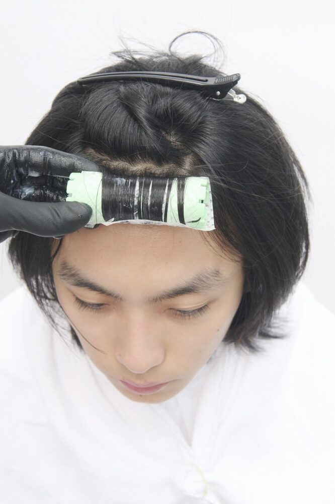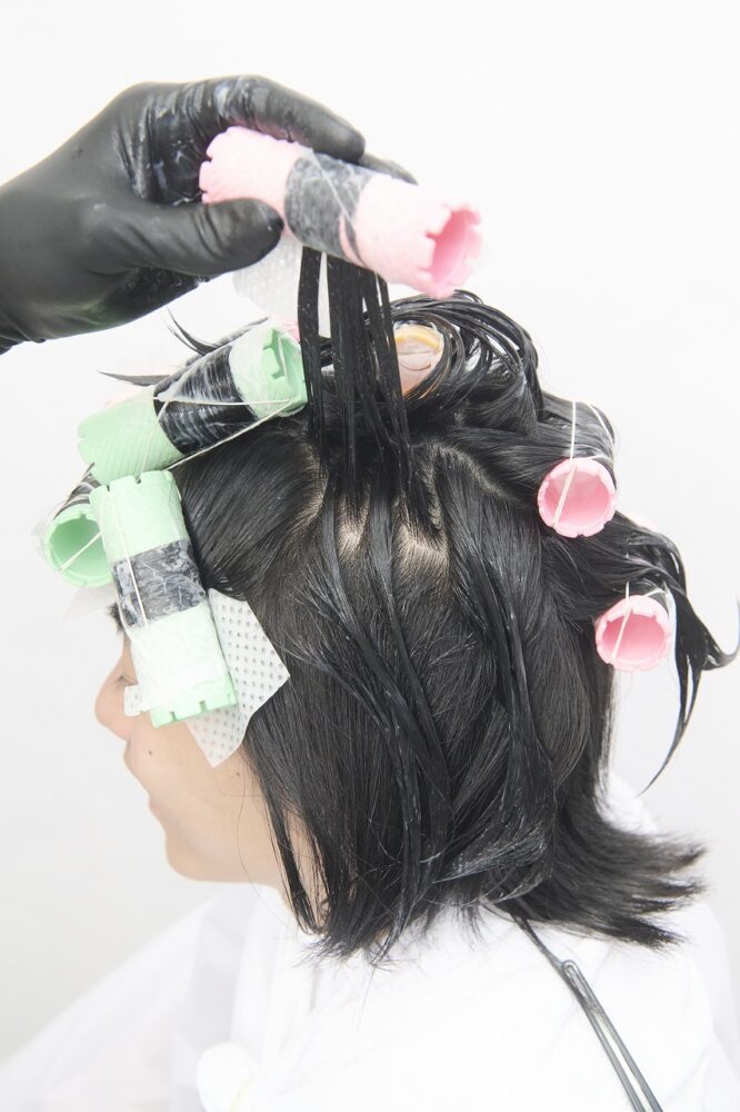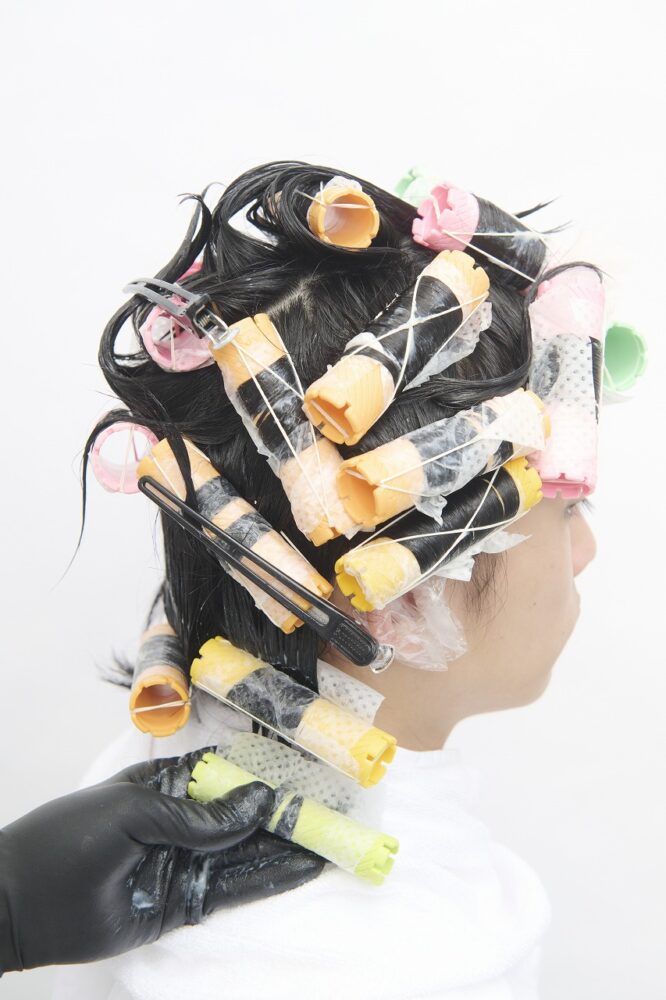 すべてつけ巻き。システアミンベースのクリームを使い、柔らかい質感をつくる。