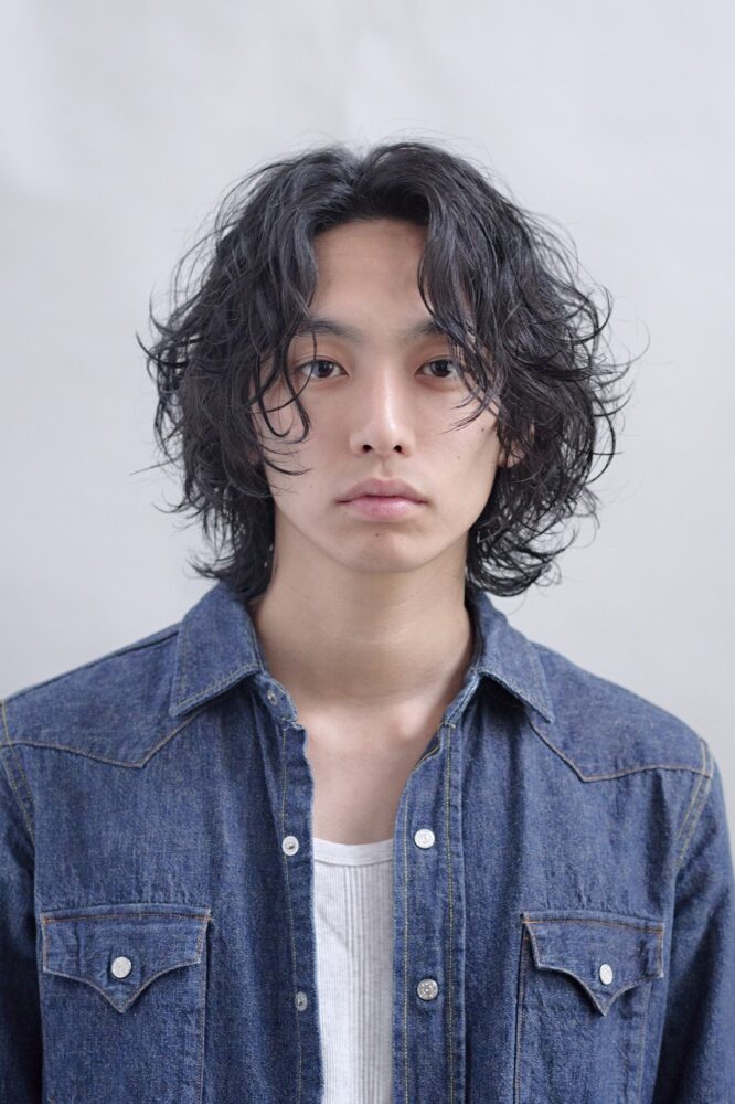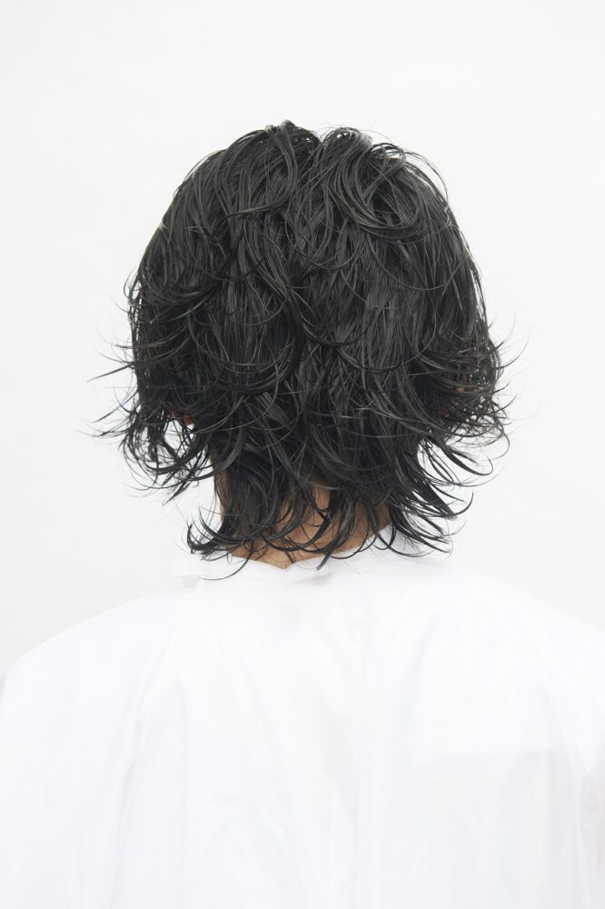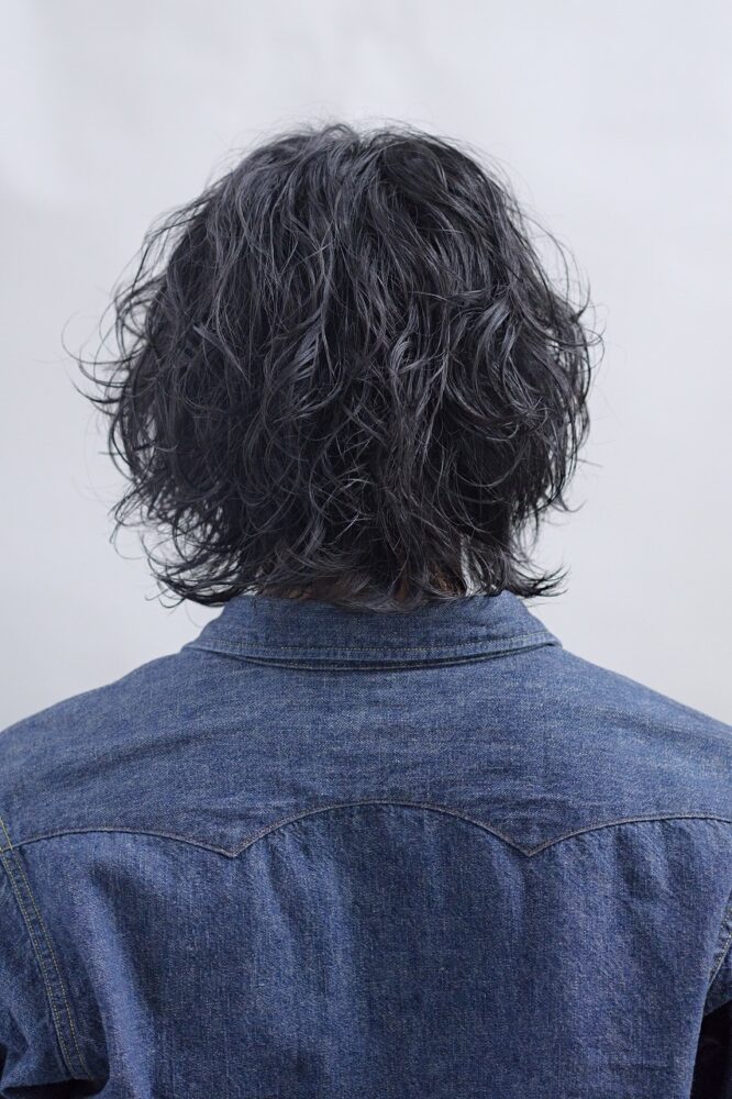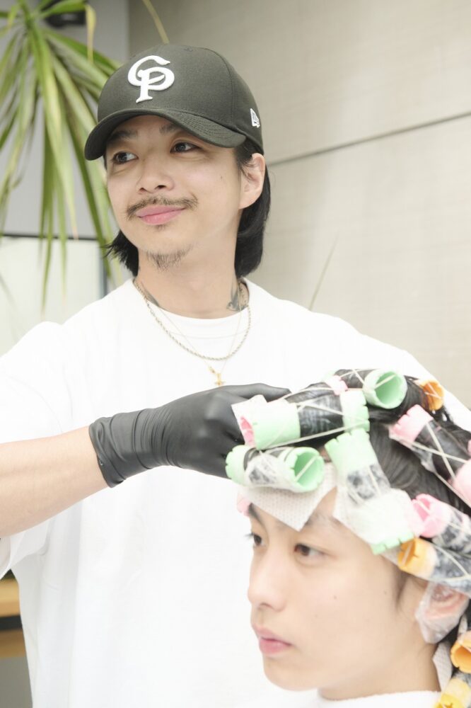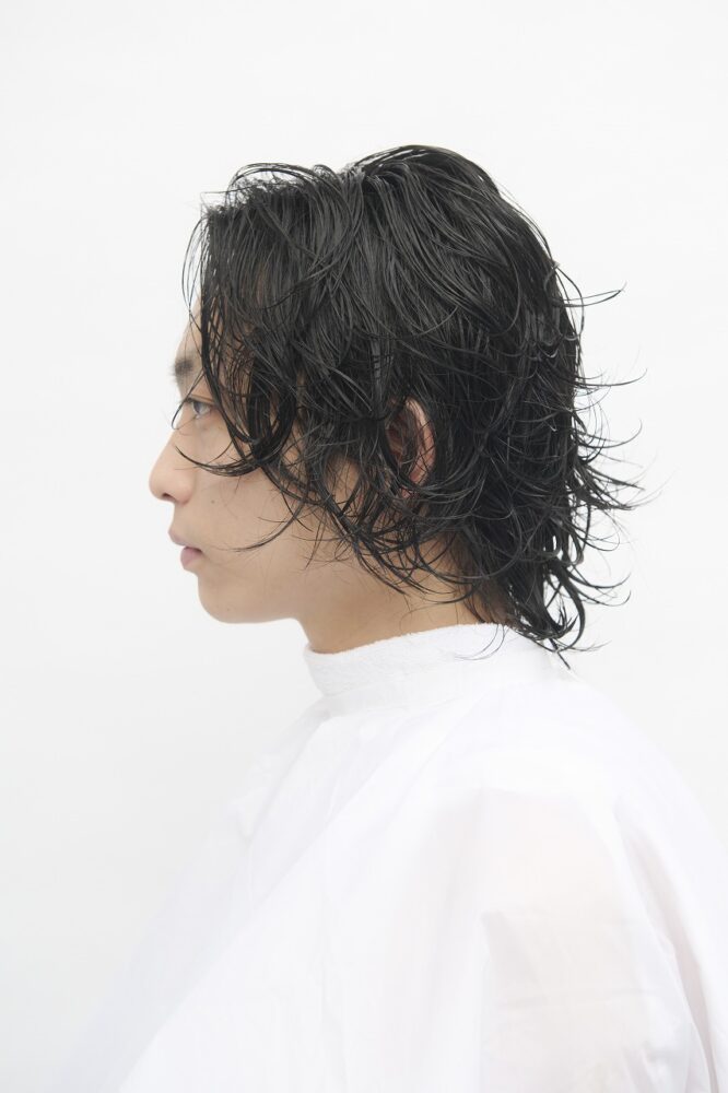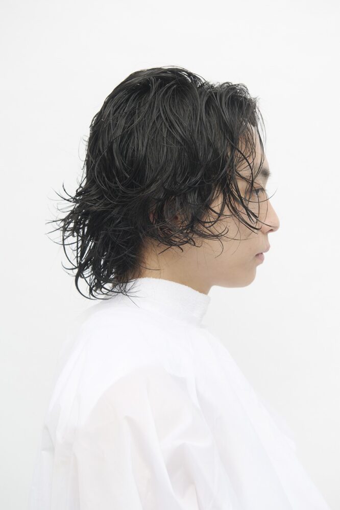 スタイリングはパーマのおかげで簡単、かつアレンジジャブルに楽しめる。今回はトリートメントフォームを全体につけてから自然乾燥でOK。より柔らかく仕上げたい時はバームやソフトワックスを、ハードにリッジを出したい時はグリースとワックスを混ぜてもみ込むのがおすすめ。