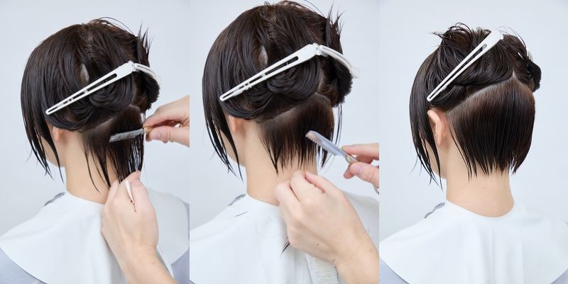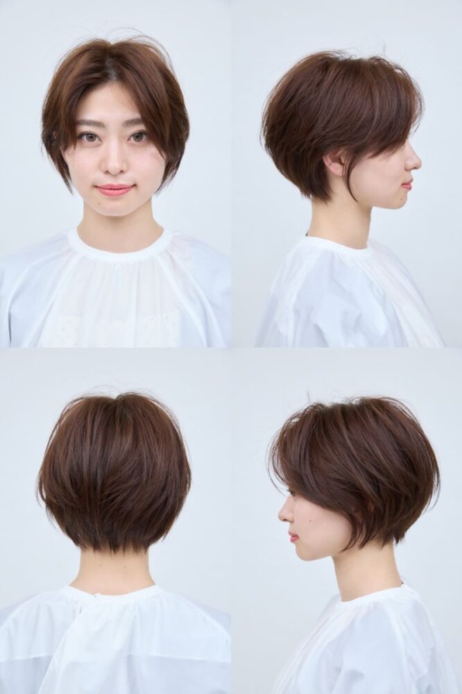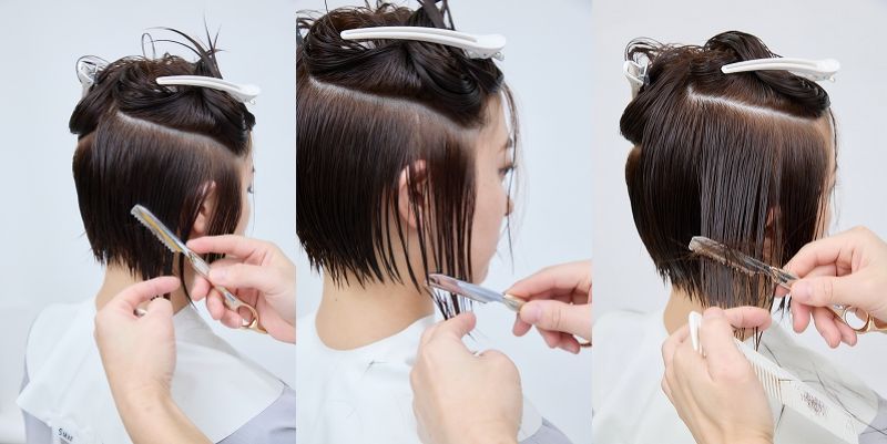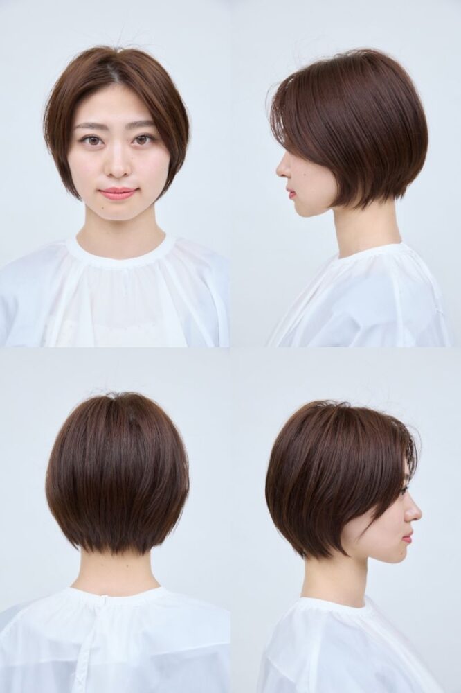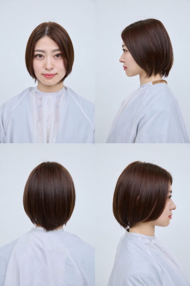 後頭部には奥行きのある丸みが出て、サイドは前下がりのバランスに。メリハリのついたきれいなシルエットが完成。