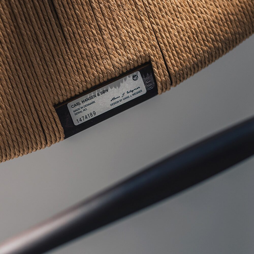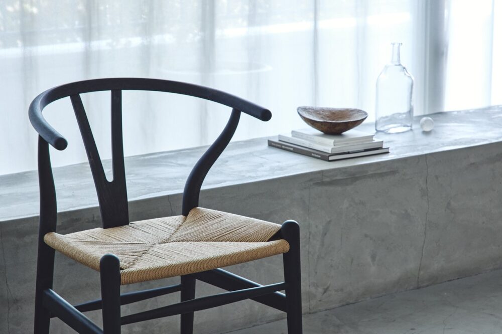デザイナーはハンス J. ウェグナー。Y字型の背もたれが特徴的で「Yチェア」とも呼ばれる。後ろ脚の美しいフォルムや丸棒を曲げた笠木の優美なラインはウェグナーのデザイン思想が反映されている。座面は職人の手によるペーパーコード張りで、柔らかな座り心地を提供する。