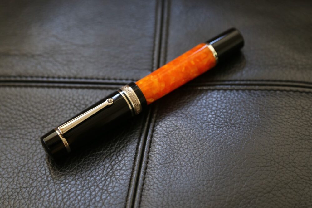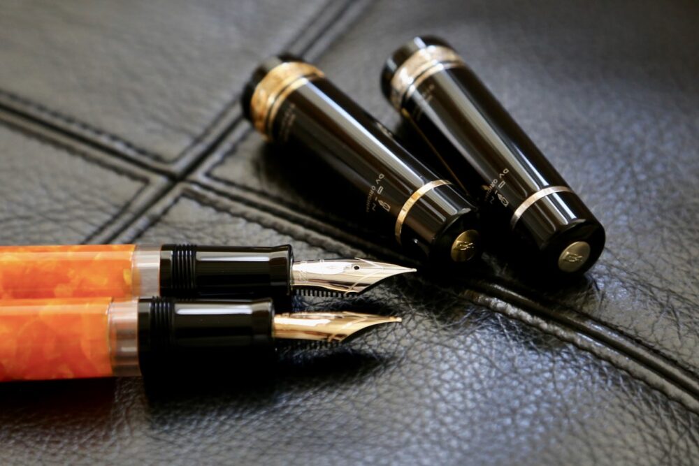 D-Nを象徴するアイコニックな最上級モデル。重量感、太軸の握りやすさ、鮮やかなレジンの質感が特徴で、圧倒的な存在感を放ち筆欲をそそる。 - ピストンフィリング (DV Piston Filling)