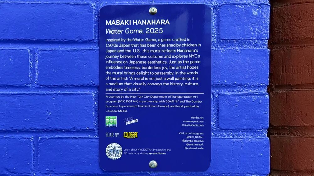 制作はニューヨークの手描き広告分野におけるトップ企業Colossal Mediaとともに担当。さらにこの壁画は、NYC DOT Art(ニューヨーク市交通局アートプログラム)とDUMBO Improvement District(ダンボ地域振興団体)の支援により実現した。行政・地域組織・民間パートナーが連携して実現させたこのプロジェクトは、単なるアートを超えた、都市文化と市民の未来をつくる社会的実践でもある。