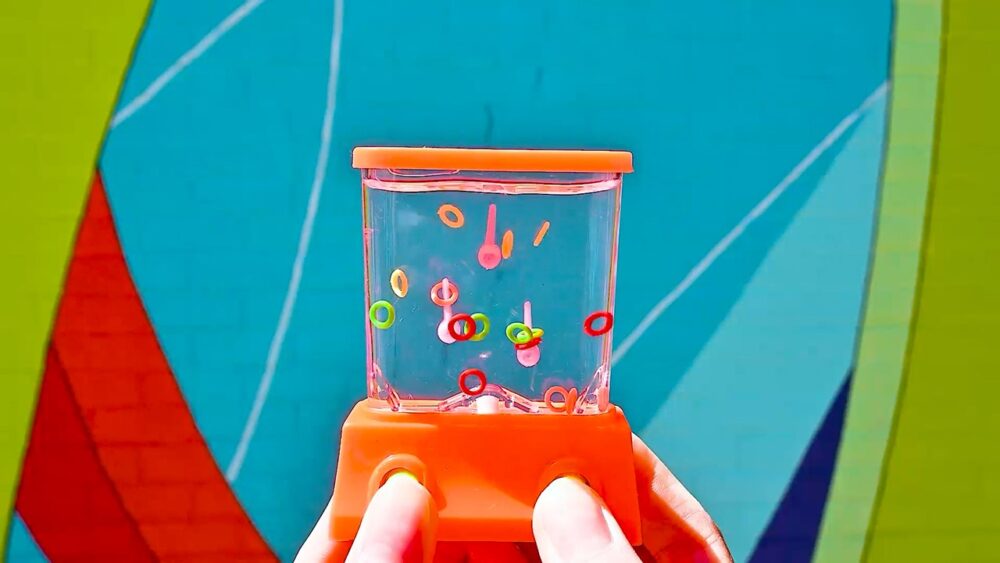 作品タイトルの《Water Game》は、1970年代に日本で発売され、後に日米両国の子どもたちに親しまれた玩具「ウォーターゲーム」に由来している。花原はこの作品に、自身のルーツである日本文化とニューヨークの多様性溢れる都市のエネルギーを重ね合わせ、「二つの文化の間を往復してきた旅路」をイメージした。