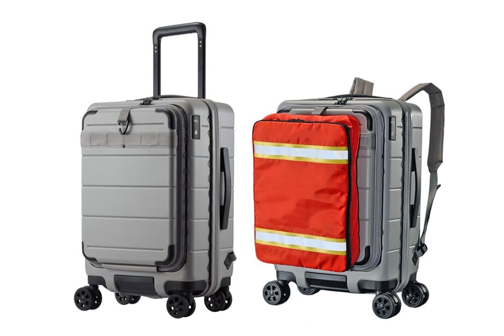 旅行と非常時の両方に対応するスーツケース「テオフィールドHS」