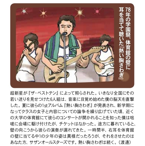 竹部:サザンは、近くの大学の学園祭に出るっていうんで、行ってみたらチケット完売で入れなくて外で音漏れを聴いてたんですよね。前に『昭和40年男』で原稿を書いてもらいました。