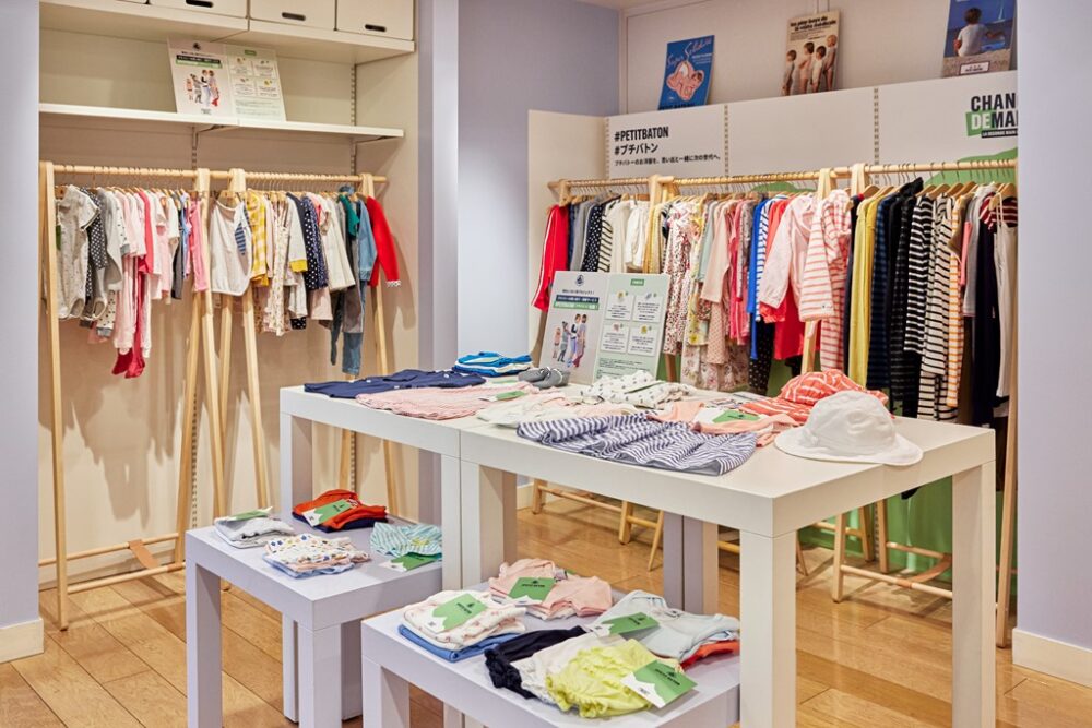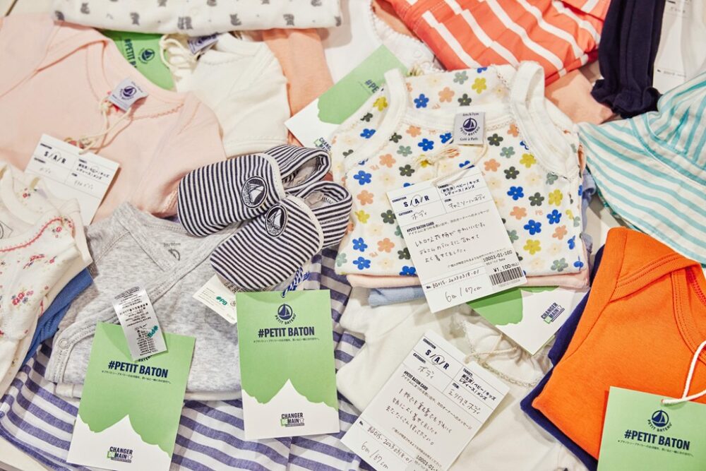 「#プチバトン」は、お客様から着なくなったプチバトーのお洋服を思い出と一緒にお預かりし、次のオーナーへとつなぐ、サステナブルな取り組みである。ブランドを愛用するお客さまと一緒に、持続可能な未来を描いていく活動の一環として展開している。現在、12店舗で回収を行い、再販可能なお洋服はプチバトーブティック 吉祥寺店にて販売されている。