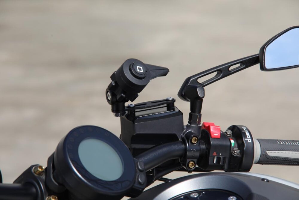 フロントブレーキはValter Moto (バルターモト)製マスターシリンダーカバーに交換し、そこにOptiline(オプティライン) のBrakeマスターシリンダーカバーマウントを装着して、スマートフォンが取り付けられるようになっている。