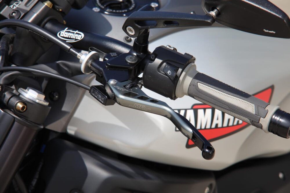 ブレーキ&クラッチレバーは、グリップからの距離と長さを調整できるMFW社製のレバーを採用し、実用性を高めるとともに見た目的なアクセントにもなっている。レバーホルダー下のコンパクトなウインカーはJvB-moto製となる。